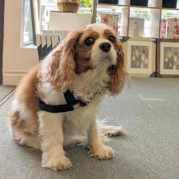 Your well behaved dog is welcome in our shop... however may be subjected to liver treats and a photoshoot. We apologize, no one can control Emma & Alisha's obsession.